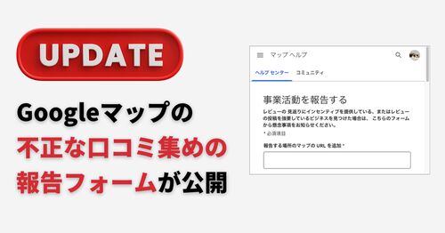 Googleマップの不正行為である「特典を使った口コミ集め」と「レビュー投稿の強要(否定的なレビュー投稿の妨害・肯定的なレビューの誘導)」を報告できる「事業活動の報告」フォームが公開されました。 事業活動を報告する - マップ ヘルプ これまで店名や…